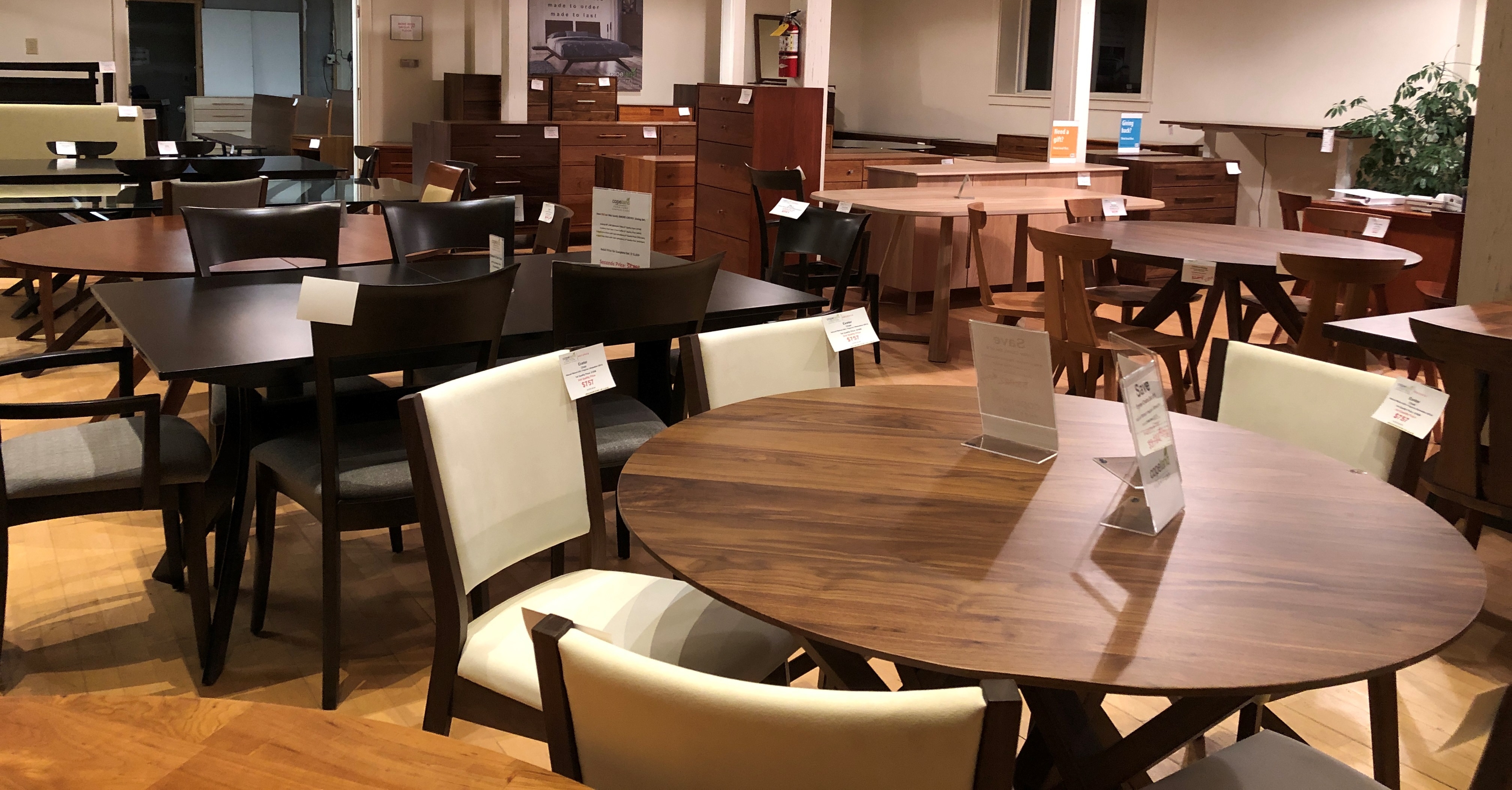 Our store exhibits a large selection of our bedroom, home office, dining and living room collections. To contact us for information about what products and styles are currently on display please click here.