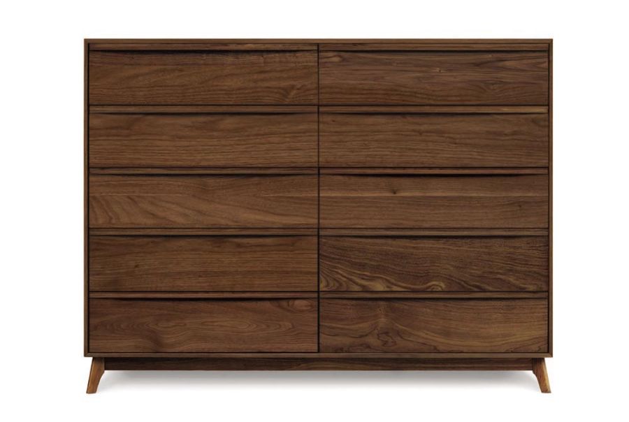 Catalina dressers and chests feature soft-close, self close drawer glides.The Catalina Bedroom is crafted in solid American black walnut hardwood with natural finish and Made to Order with a variety of knob or pull options. The Catalina Bedroom is also crafted in solid cherry with natural finish. The finish is GREENGUARD Certified for low chemical emissions.