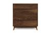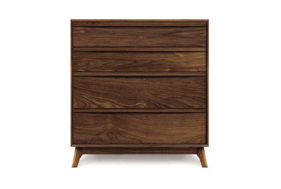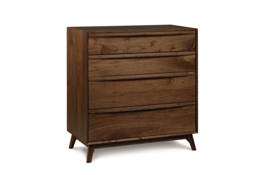 Catalina dressers and chests feature soft-close, self close drawer glides.The Catalina Bedroom is crafted in solid American black walnut hardwood with natural finish and Made to Order with a variety of knob or pull options. The Catalina Bedroom is also crafted in solid cherry with natural finish. The finish is GREENGUARD Certified for low chemical emissions.