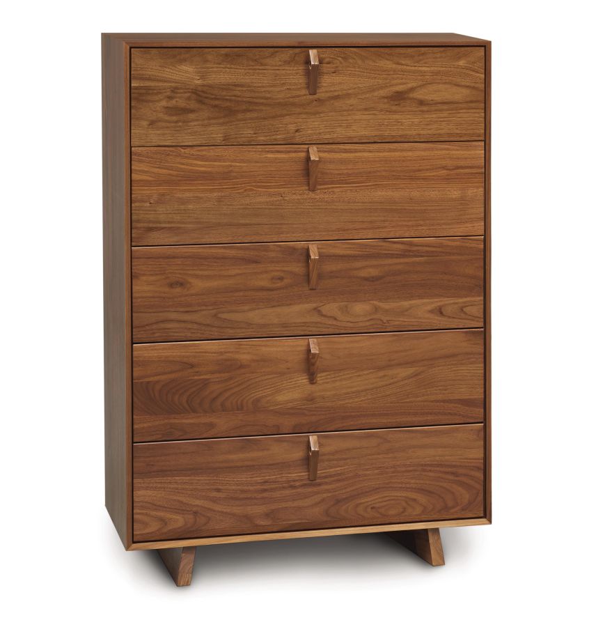 The Keaton Bedroom is crafted in solid American black walnut hardwood with natural finish and Made to Order with a variety of knob or pull options. The finish is GREENGUARD Certified for low chemical emissions