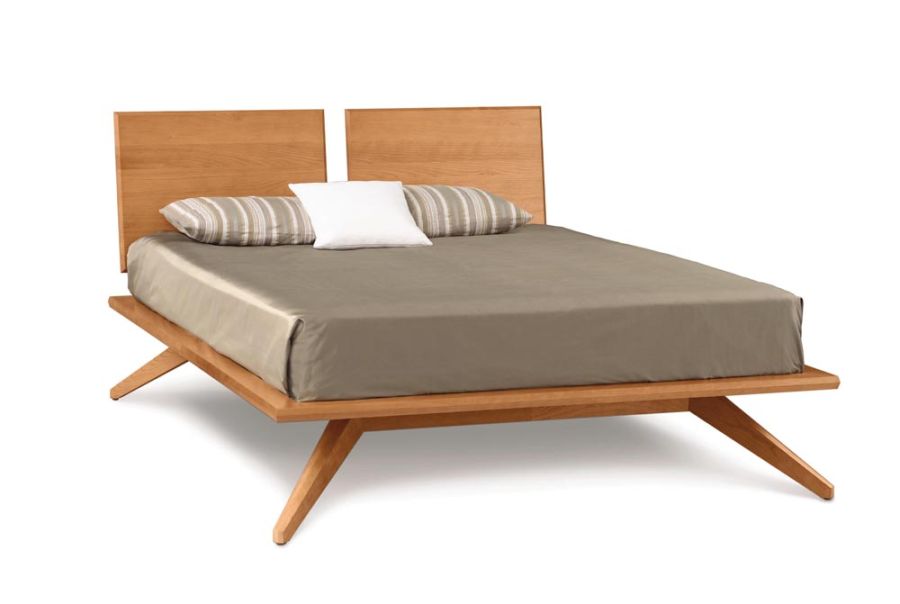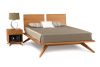 A true platform bed, Astrid may be ordered with or without 1 or 2 headboard panels. Recommended mattress thickness is 8 in. to 12 in. The Astrid Bedroom is crafted in solid cherry hardwood and Made to Order in several finishes. The Astrid Bedroom is also crafted in a combination of solid walnut and dark chocolate maple. The finish is GREENGUARD Certified for low chemical emissions.