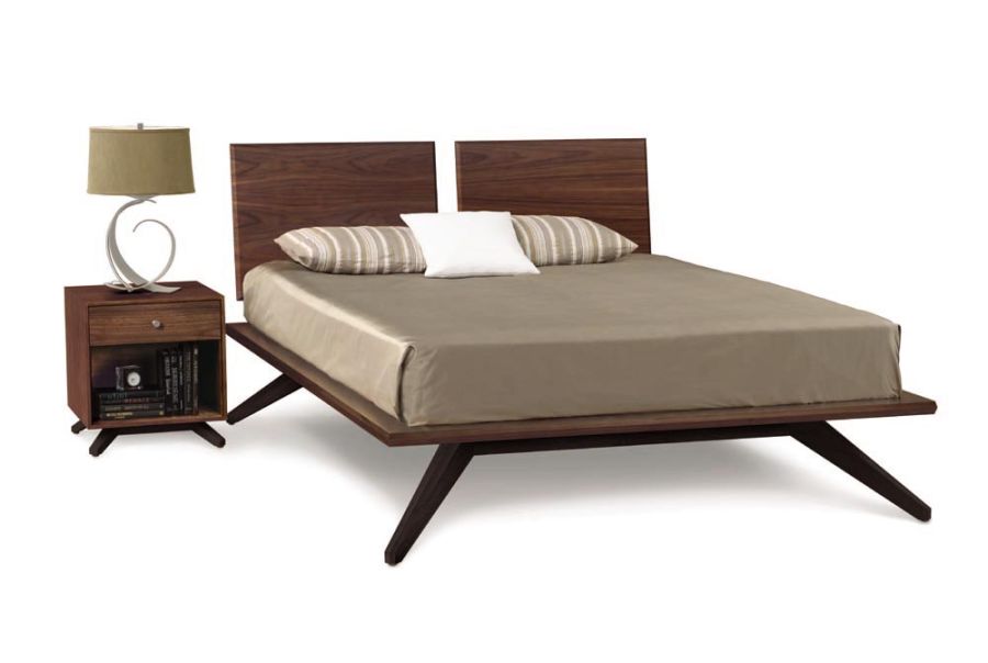 A true platform bed, Astrid may be ordered with or without 1 or 2 headboard panels. Recommended mattress thickness is 8 in. to 12 in. The Astrid Bedroom is crafted in solid walnut with dark chocolate maple bases. The Astrid Bedroom is also crafted in solid cherry with several finish options. The finish is GREENGUARD Certified for low chemical emissions.