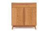 Catalina Buffets are available in a number of sizes and configurations to meet the needs of almost any dining space. Buffets feature soft close hinges and drawer glides. Buffets with drawers include one tarnish resistant silverware tray. This case also features one adjustable shelf. The Catalina Dining Room is crafted in solid cherry and Made to Order in several finishes with a variety of knob or pull options. Catalina buffets are also crafted in solid American black walnut with natural finish. Walnut dining items are finished with low sheen (10 sheen) top coat. The finish is GREENGUARD Certified for low chemical emissions.