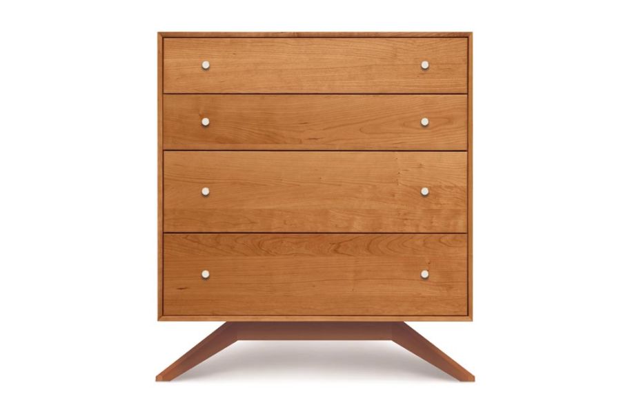 The Astrid Bedroom is crafted in solid cherry hardwood and Made to Order in several finishes with a variety of knob or pull options. Astrid dressers and chests feature soft-close, self close drawer glides. The Astrid Bedroom is also crafted in a combination of solid walnut and dark chocolate maple. The finish is GREENGUARD Certified for low chemical emissions.