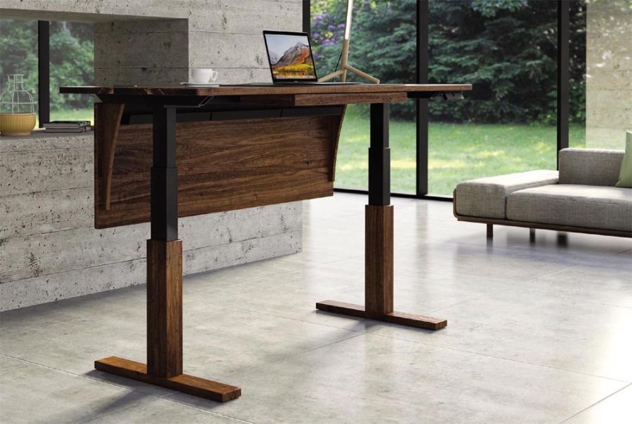 The Invigo Sit-Stand Desks are crafted in solid cherry, solid walnut or solid oak hardwood and Made to Order in several finishes. The finish is GREENGUARD Certified for low chemical emissions. Desk tops and all wooden elements are manufactured in Vermont with imported electronic lift base, hardware and accessories.