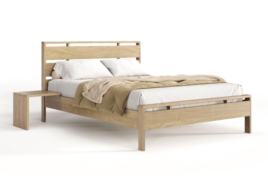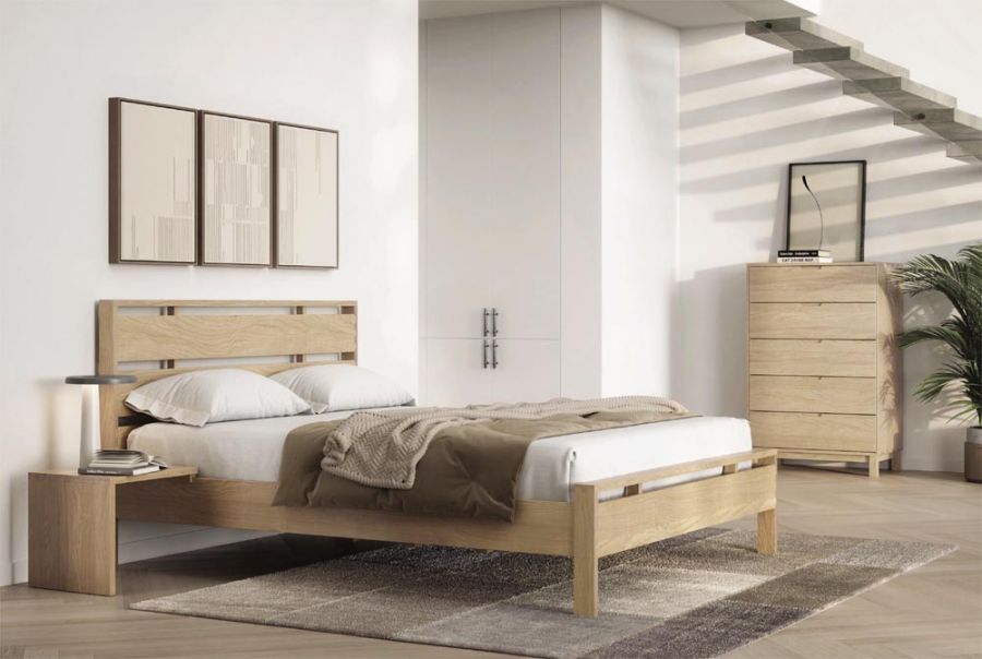 A confluence of contemporary design and traditional woodworking techniques, the Oslo bedroom proudly declares its craftsmanship with visible joinery throughout. The Oslo Bed is designed for a mattress only. It is perfectly complemented by the attached nightstands.