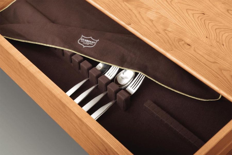 Sarah Buffets are available in a number of sizes and configurations to meet the needs of almost any dining space. Buffets feature soft close hinges, soft-close, self close drawer glides and one tarnish resistant silverware tray and are available in a variety of knob and pull options. This case has one adjustable shelf. The Sarah Dining Room is crafted in solid cherry with several finish options. The finish is GREENGUARD Certified for low chemical emissions.