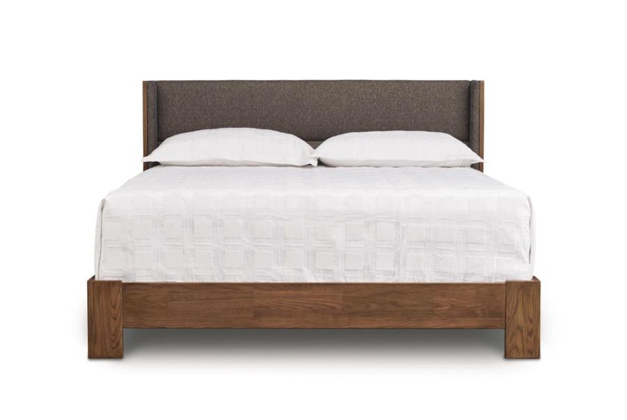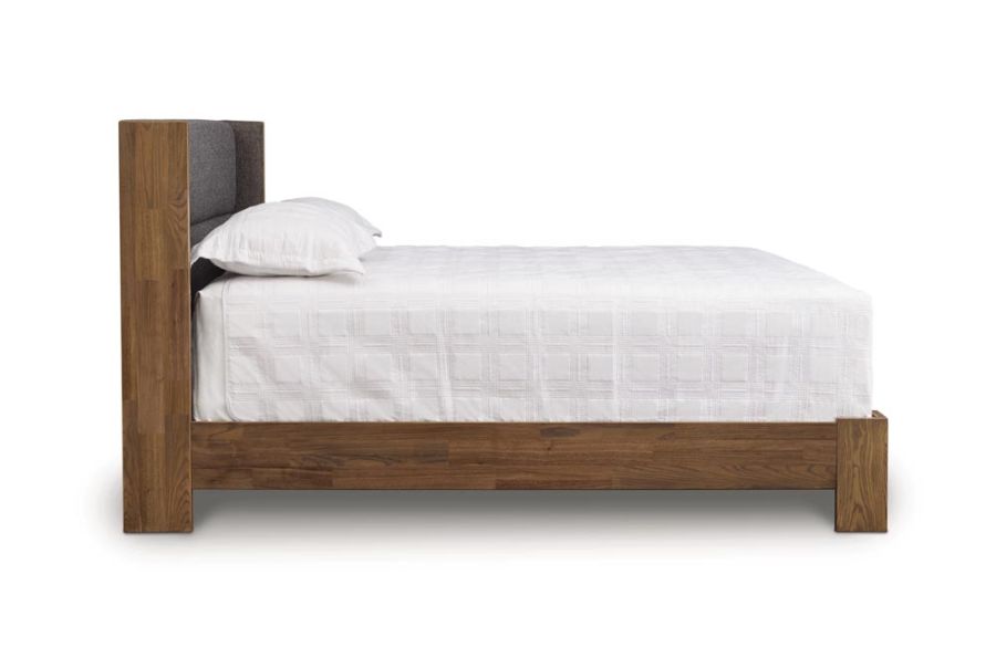 Crafted in solid American black walnut with natural finish the Sloane bed is offered in a range of microsuede, fabric, Ultrasuede®, Ultraleather® as well as COM (customers own material). The Sloane bed is shown here in SLATE (M10245) upholstery and also crafted in solid ash with several finish options. All finishes are GREENGUARD Certified for low chemical emissions. Click the Catalog tab above to view available upholstery options.