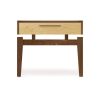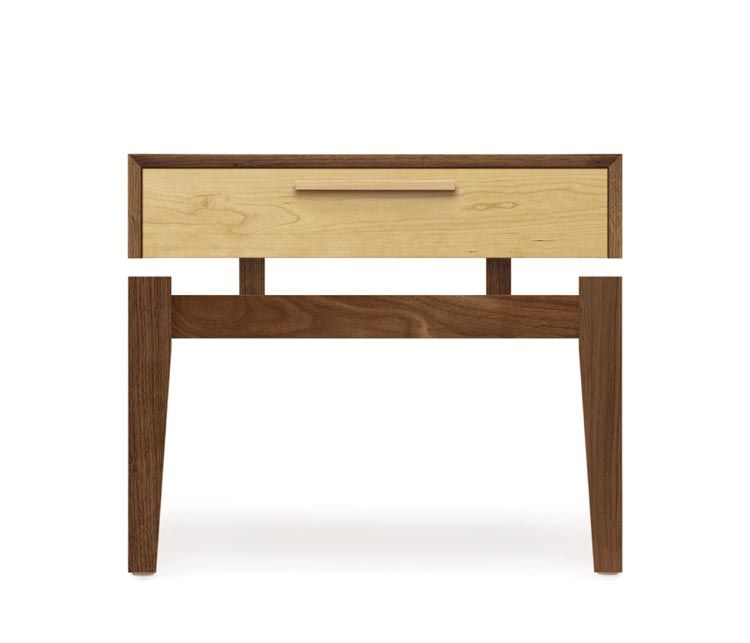 SoHo nightstand features precision bearing drawer glides and is crafted in solid walnut and maple and Made to Order with a variety of knob or pull options. SoHo nightstands are also crafted in solid walnut and cherry as well as an assortment of species combinations for a highly customizable room setting. The finish is GREENGUARD Certified for low chemical emissions.