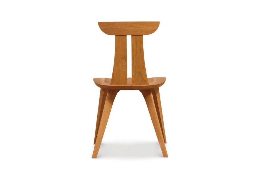 The Estelle Sidechair is crafted in solid cherry hardwood and Made to Order in several finishes. Estelle is also crafted in solid American black walnut with natural finish. Walnut dining items are finished with a low sheen (10 sheen) top coat. The finish is GREENGUARD Certified for low chemical emissions.
