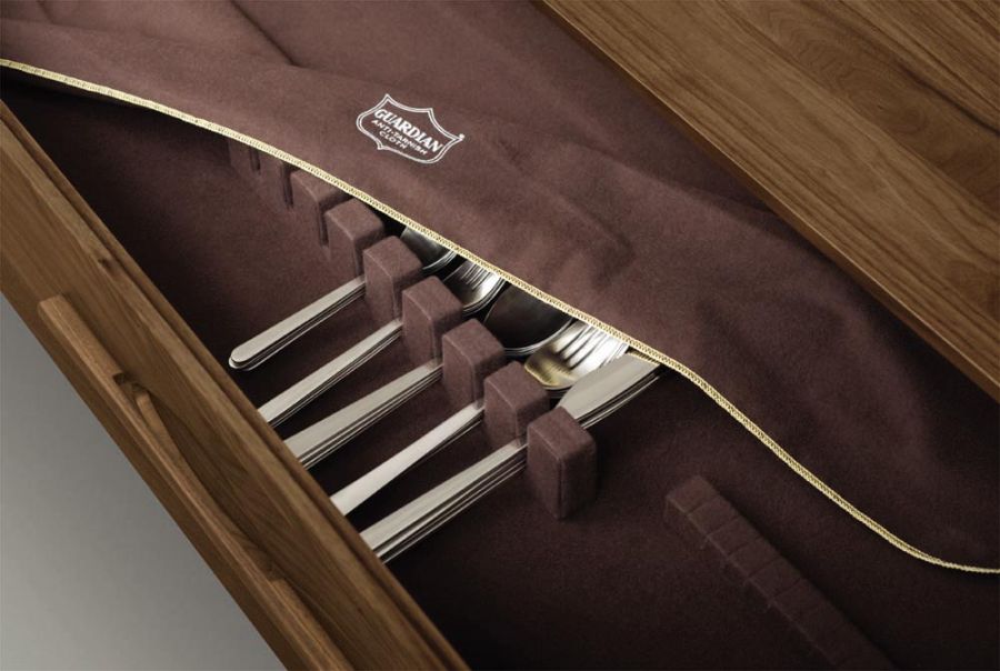 Buffets feature soft close hinges and under mounted soft-close, self close drawer glides. Buffets with drawers include one tarnish resistant silverware tray. This case has one adjustable shelf. The Audrey Dining Room is crafted in solid American black walnut with natural finish. The Audrey Dining Room is also crafted in solid cherry with several finish options. Walnut dining items are finished with a low sheen (10 sheen) top coat. The finish is GREENGUARD Certified for low chemical emissions.