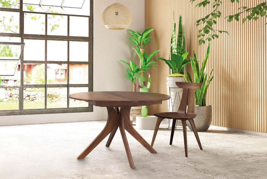 The Estelle Sidechair is crafted in solid American black walnut hardwood and Made to Order in natural finish. The Estelle Counter Stool is also crafted in solid cherry with several finish options. Walnut dining items are finished with a low sheen (10 sheen) top coat. The finish is GREENGUARD Certified for low chemical emissions.