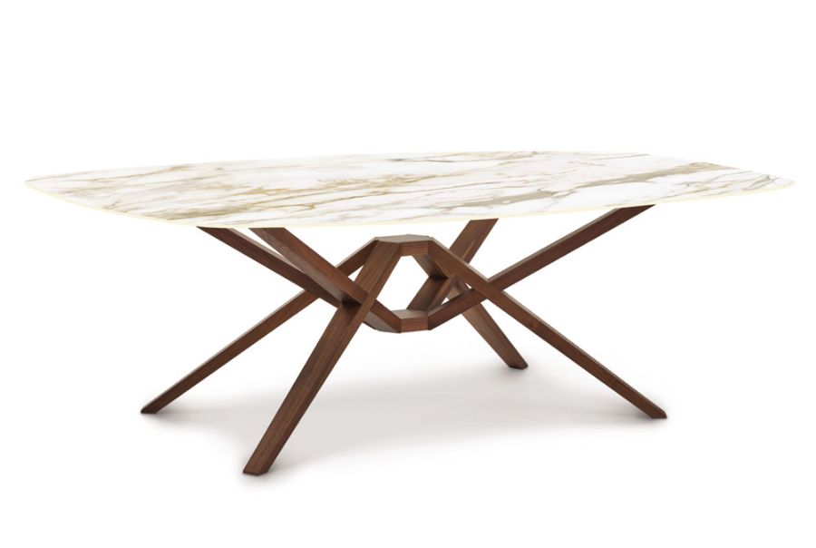 Exeter Boat Shaped Sintered Stone Top Tables in Walnut