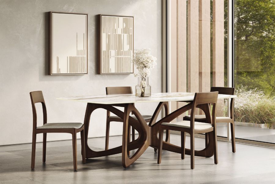 The Lisse Chair is crafted in solid American black walnut hardwood and solid oak hardwood and is Made to Order in a range of finishes. Walnut dining items are finished with a low sheen (10 sheen) top coat. The finish is GREENGUARD Certified for low chemical emissions.