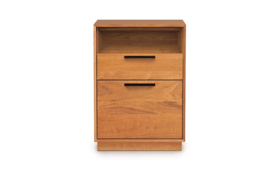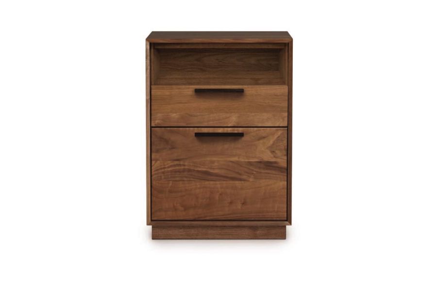 The Linear Office Storage cases are crafted in solid cherry, solid American black walnut or solid oak hardwood and Made to Order in several finishes* with a variety of knob or pull options. The finish is GREENGUARD Certified for low chemical emissions. *Natural variations in solid wood and hand-applied finishes make each piece unique. Slight grain and finish irregularities as well as subtle differences in stain shades are signs that the furniture has been crafted from solid wood and are considered hallmarks of quality.