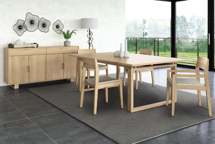 All pieces are made of solid oak hardwood and Made to Order in several finishes* with a variety of pull options. Iso Dining items are finished with a low sheen (10 sheen) top coat. The finish is GREENGUARD Certified for low chemical emissions.