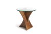 The tables are crafted in solid American black walnut and topped with clear tempered 15mm glass (glass tops are imported). The finish is GREENGUARD Certified for low chemical emissions.
